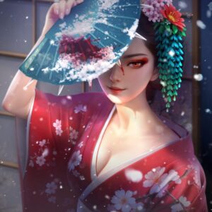 Latar permainan dipenuhi nuansa Jepang era Edo dengan dominasi warna merah dan emas—simbol kemarahan, kehormatan, dan kemenangan. Tokoh utama, Geisha, bukan sekadar ikon kecantikan Jepang, melainkan simbol balas dendam yang menebus kehormatan dengan kekuatan.